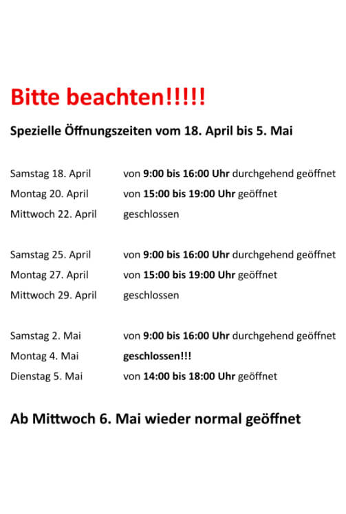 Bestellungen müssen spätestens am Freitag Abend bei uns eintreffen, damit sie in der Folgewoche am Montag / Dienstag versandt werden können!